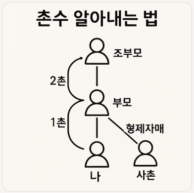 촌수는 상속, 병역, 민법상 가족 범위, 장례 절차, 가족관계증명서 등 다양한 상황에서 매우 중요한 기준이 되므로, 이 글을 통해 명확하게 이해해 두시면 매우 유용하게 활용할 수 있을 것입니다.
