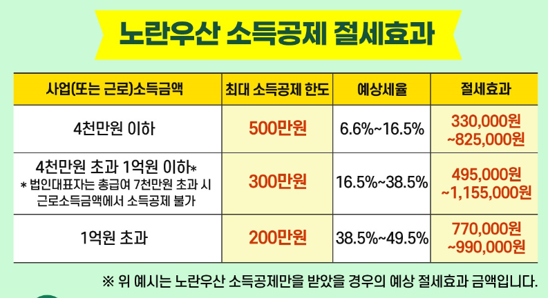 노란우산 가입자의 소득공제 예시