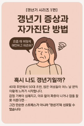 이 글에서는 갱년기의 주요 증상과 자가진단 방법을 의학적 근거를 바탕으로 정리했습니다.