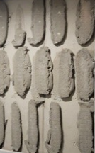 혼합: 보통 몰탈과 물의 비율은 몰탈 1kg에 물 300ml 정도를 사용하는 것이 보통입니다. 직접 섞어 보면서 너무 질지 않게 잘 섞어서 사용합니다. 특히 떡밥은 원 벽면과 타일의 공간을 채울정도의 두께를 유지 할 수 있도록 양을 조절해서 만들고 타일에 떡밥을 충분히 덩어리로 붙인후 벽면에 타일을 부착합니다.