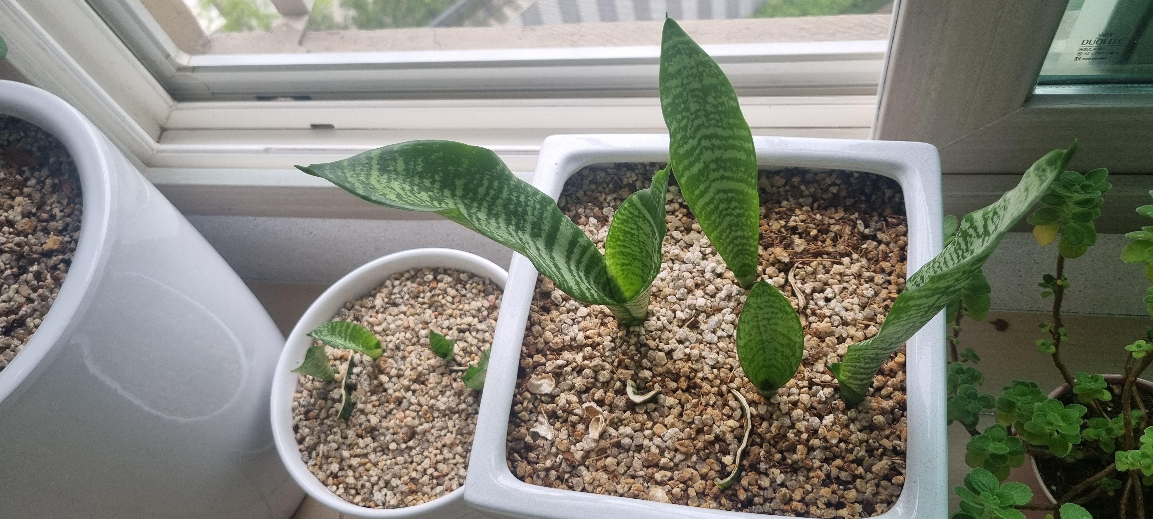 건강하게 자란 산세베리아 새끼를 떼어내서 화분에 심어주면 산세베리아 수경 번식 완료입니다.