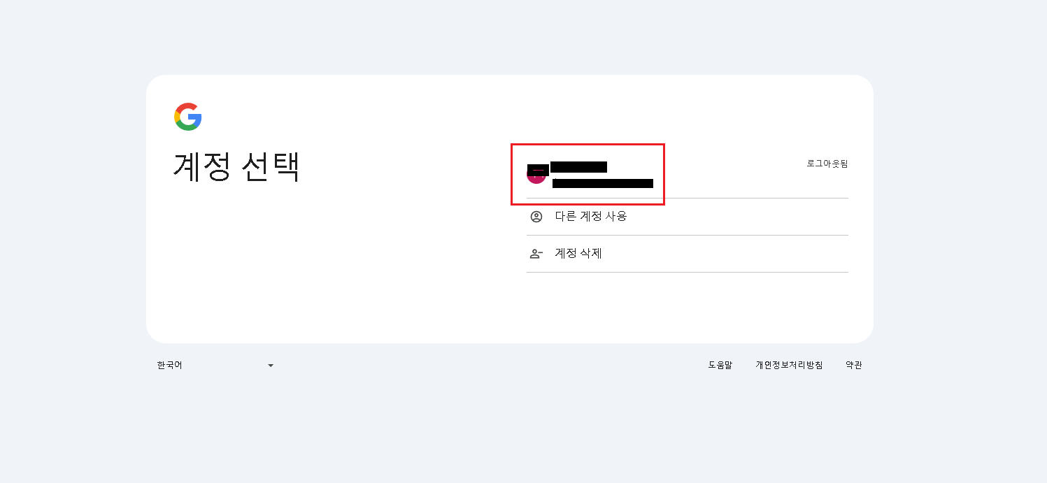 2. 계정선택하기 페이지에서 자신이 사용하는 구글 계정을 클릭합니다. 다음페이지에서 비밀번호를 넣어주세요
