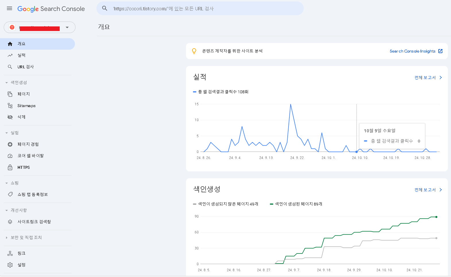 3. 구글서치콘솔에 접속이 됩니다.