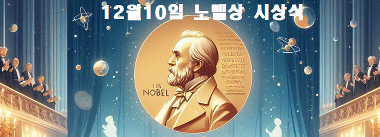 2024년 '한강' 작가가 노벨 문학상을 수상하는 쾌거를 이룩하여 우리나라에서 두번째로 노벨상 시상식에 수상자로 참여하게 되었습니다. 시상식은 알프레드 노벨의 조국인 북유럽의 스웨덴 스톡홀름에서 매년 12월 10일 이루어지며 노벨의 기일에 맞추어 열리는 행사입니다.