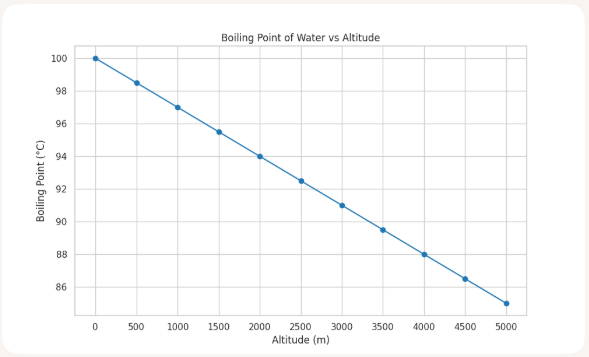 즉, 고도가 높아질수록 대기압 ↓ → 끓는점 ↓ 이라는 관계가 성립합니다
