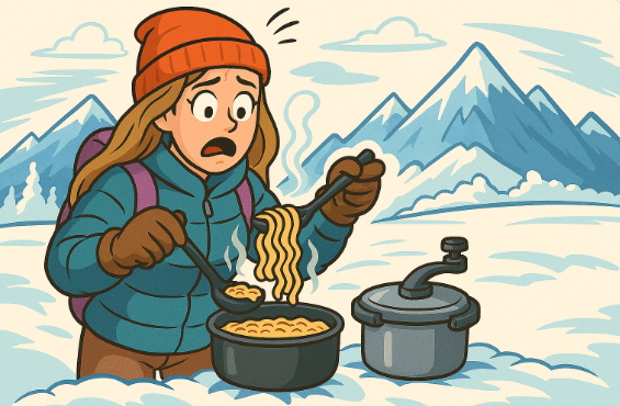 그래서 고산지대 원정대는 압력을 높일 수 있는 압력밥솥(Pressure Cooker)를 챙기는 경우가 많습니다. 압력을 인위적으로 높여야 비로소 100°C 근처에서 조리가 가능해지기 때문입니다.