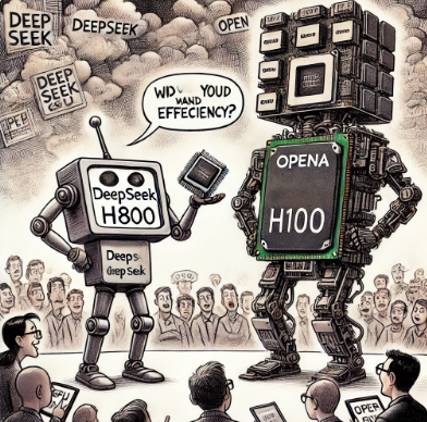 - 딥시크가 사용한 H800 GPU는 OpenAI의 H100 대비 50% 성능밖에 되지 않음.