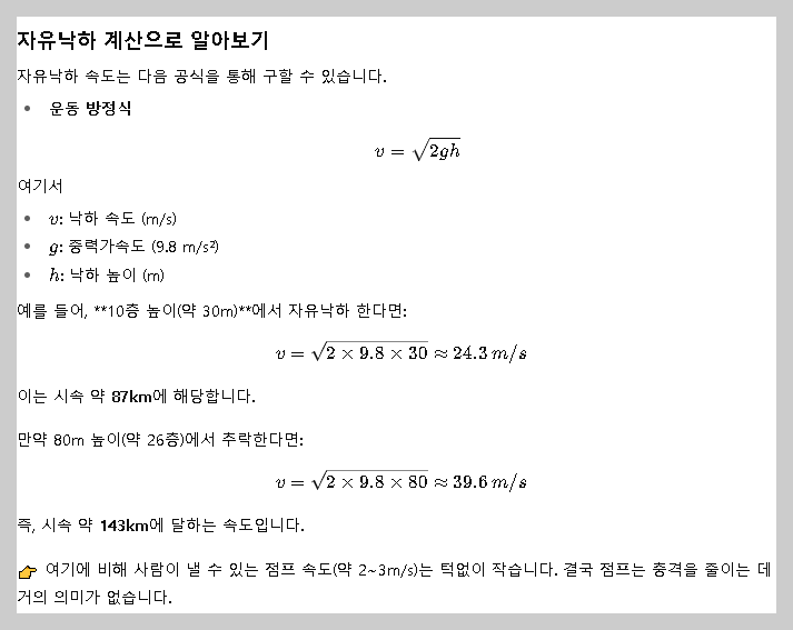 인간의 점프 속도는 자유낙하로 얻는 충격 속도와는 비교조차 할 수 없기 때문이죠.