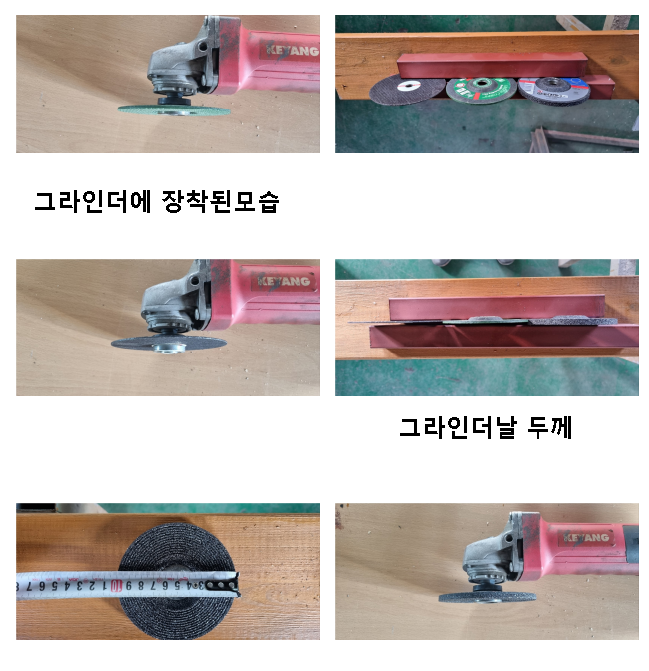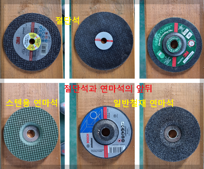 - 절단석(1mm 두께,10 ~ 11cm 외경): 철재 및 비철금속 절단에 사용됩니다.