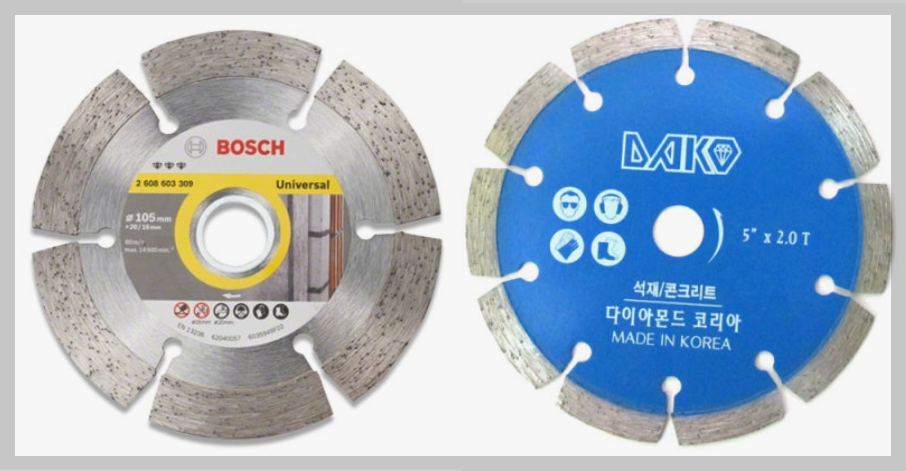 | 다이아몬드컷팅디스크 | 콘크리트,석재,대리석,화강암,타일,별돌 절단 | 105~230 | 16~22.3 | 1.2~3.2 | 인조 다이아몬드 세그먼트가 부착되어 절삭 | |