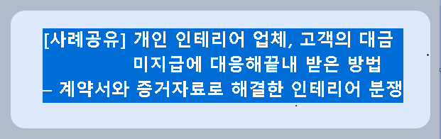 이번 사례는 개인 인테리어 업체가 고객으로부터 미지급된 대금을 끝내 돌려받은 과정을 알아보았습니다..