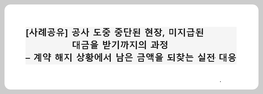 이 사례는 공사 도중 발주처가 사업을 중단하여 대금이 지급되지 않는 경우, 법적으로 대응하여 대금을 회수하는 과정을 담고 있습니다. 같은 문제를 겪고 있다면 이 단계를 그대로 따라 하면 실질적으로 대금을 받을 가능성이 높습니다.