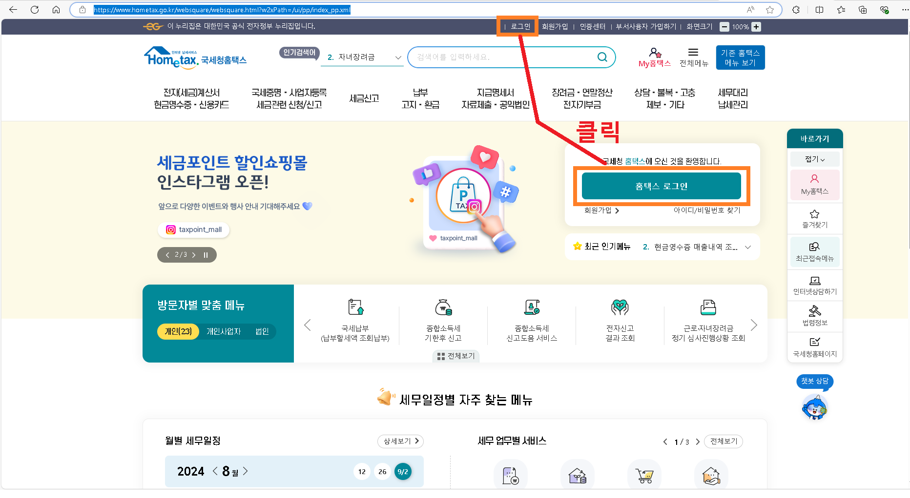 먼저 국세청 홈텍스 홈페이지에 접속합니다.
