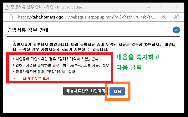 추후 미비된 서류는 세무서 담당자가 추가 서류를 요청 할 수 있습니다.