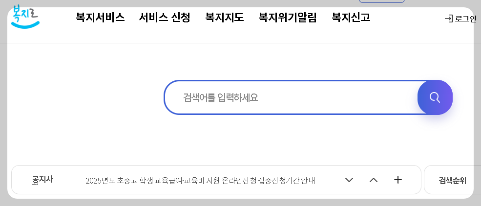 - 상단 메뉴에서 ‘복지서비스 찾기’ 클릭