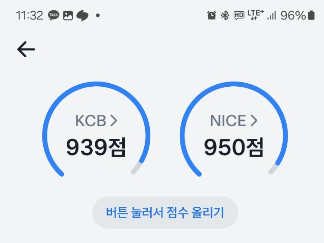 2.위 이미지에서 하단에 버튼 눌러서 점수 올리기 를 실행하면 현재 자신의 신용정보를 취합하여 새로운 신용점수를 업데이트 할 수 있습니다.