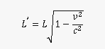 이 공식에서 v는 물체의 속도, c는 빛의 속도를 의미합니다. 이 공식에 의하면 빠르게 움직이는 물체의 길이(L')가 정지한 관찰자의 길이(L)보다 짧아진다는 것을 의미하고 있습니다. 이 공식에서 알 수 있듯이 물체의 속도가 빛의 속도에 가까워 질수록 L은 작아지므로 결국 물체가 매우 빠른 속도로 이동 할 수록 길이가 짧아 진다는 의미 입니다.