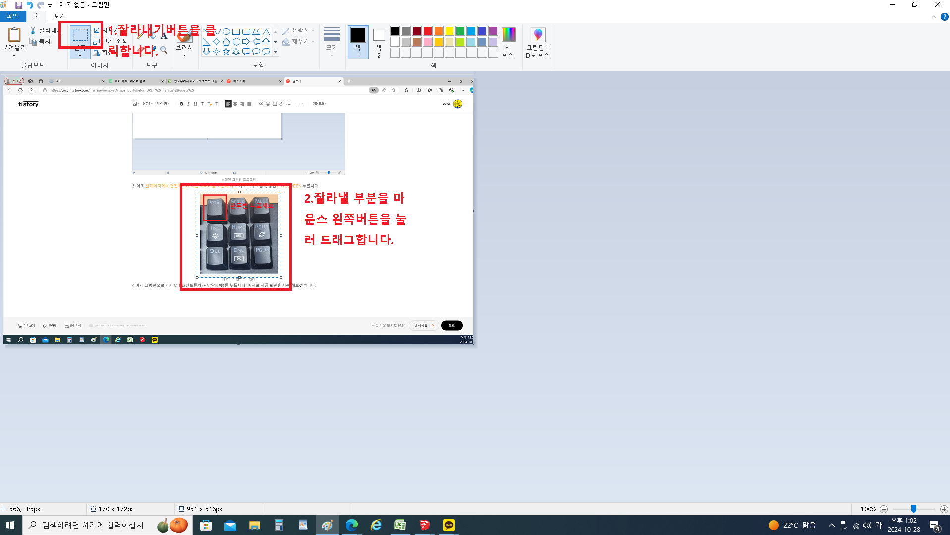 윈도우 그림판으로 프린트스크린(현재화면) 편집하기 2편