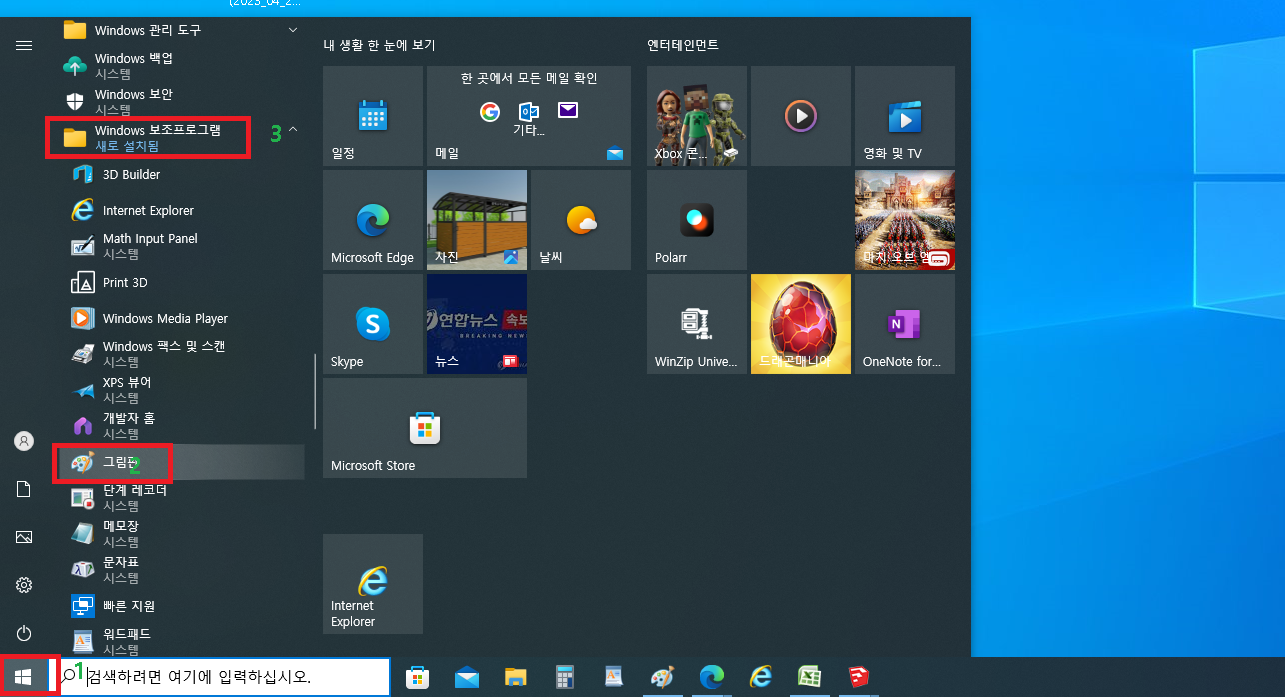 1.윈도우 그림판을 빨간색 마킹 순서대로 마우스를 클릭 합니다.