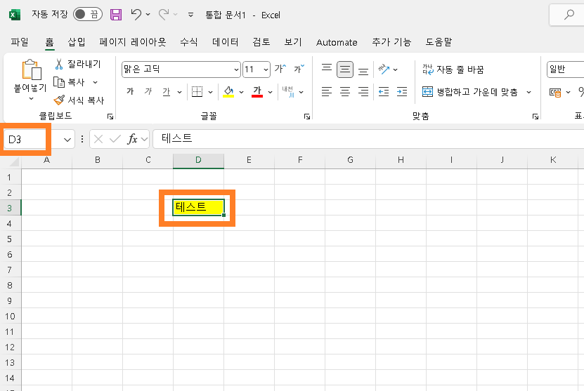 이그림에서 박스 부분을 잘 살펴보면 테스트라는 셀의 위치를 파악할 수 있는데 D3이라는 고유의 셀을 나타내고 있습니다. 이제 셀의 기본 개념을 알았으니 본격적으로 바로 가로견적서 만들기에 들어가 보겠습니다. 앞서 알려드렸 듯이 견적서를 구성하는 내용중 가로부분에 들어가야 될 내용 6번을 참고해서 보면 가로로 최소 7개의 셀이 필요하다는 것을 알 수 있습니다. 그리고 세로는 대략 20칸 정도를 활용하도록 해보겠습니다. 칸은 언제든 늘리고 줄이는것이 가능하므로 일단 최소로 필요한 셀보다 약간 많게 구역을 잡으면 될것입니다. 여기서는 가로 10칸 세로 20칸으로 시작해 보도록 하겠습니다.