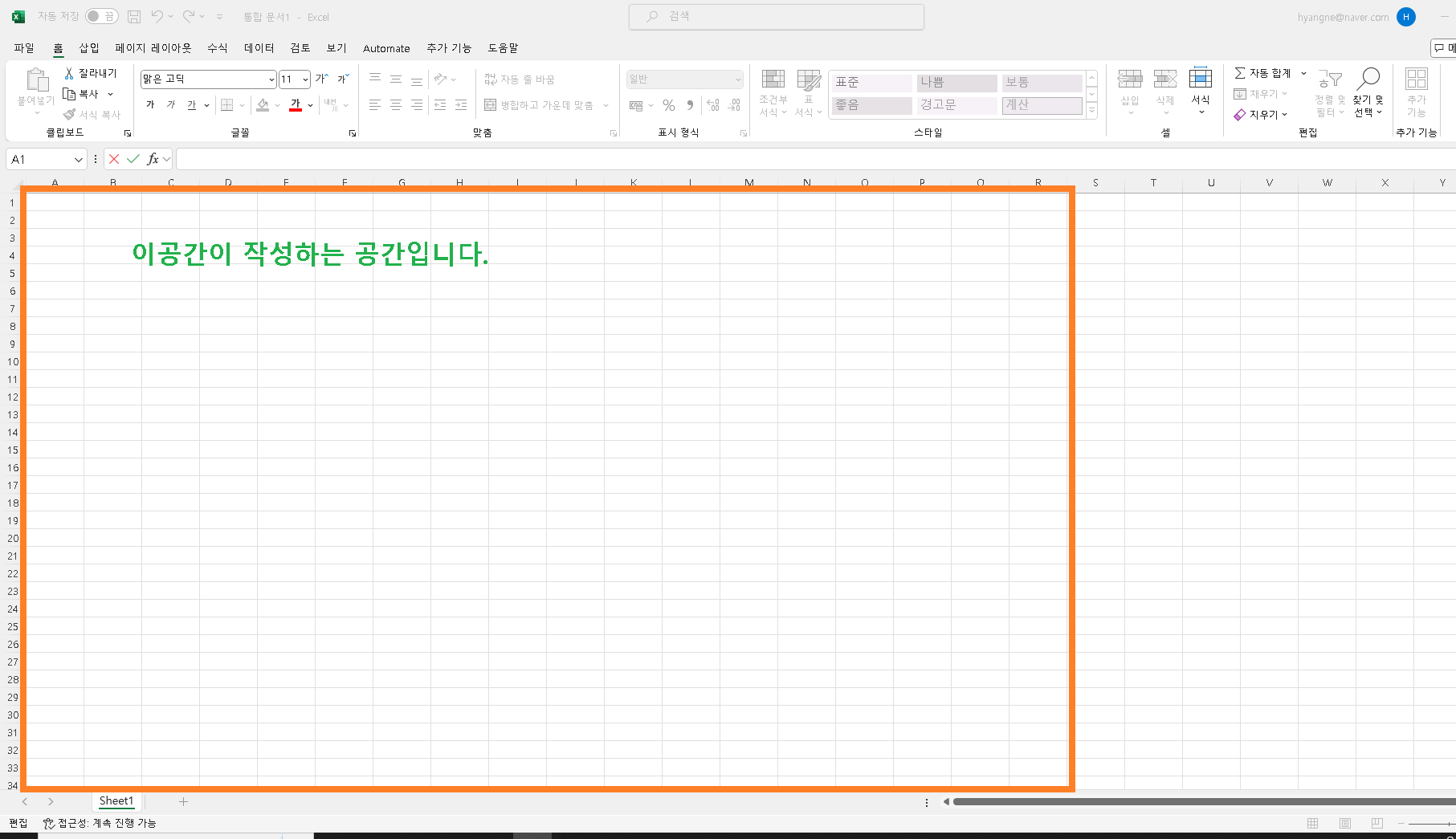 이제 마지막 색깔 넣기와 계산식만 넣으면 완료됩니다. 힘내시고 따라해 주세요