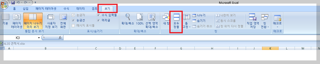 - 엑셀 파일을 열었는데 시트가 보이지 않음