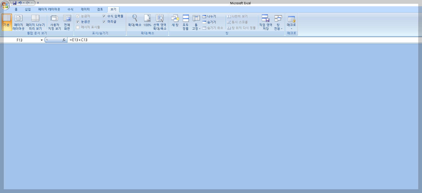 컴퓨터로 엑셀 파일을 열었는데, 창은 분명 떴지만 아무것도 보이지 않는 상황.