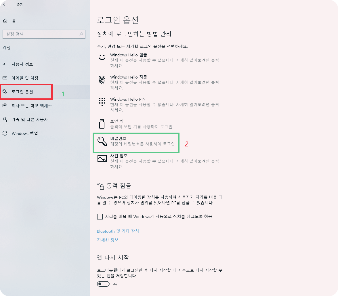 윈도우는 단순 비밀번호 외에도 다양한 로그인 수단을 제공합니다.