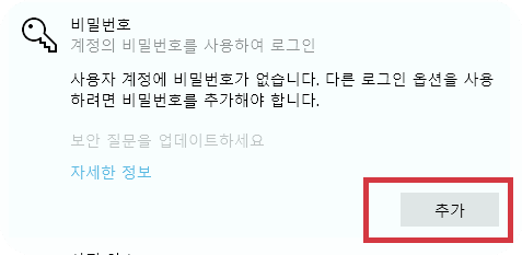 4.비밀번호를 클릭하면 추가라는 버튼이 생깁니다.