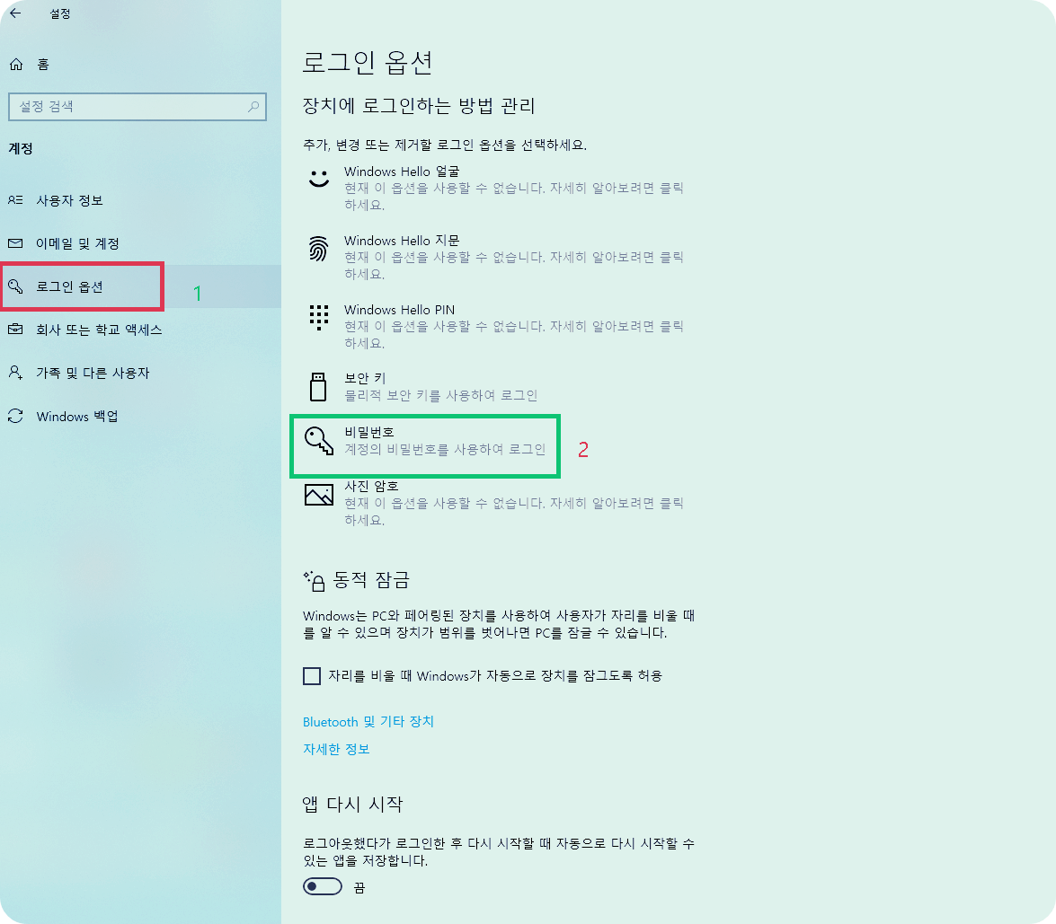윈도우는 단순 비밀번호 외에도 다양한 로그인 수단을 제공합니다.