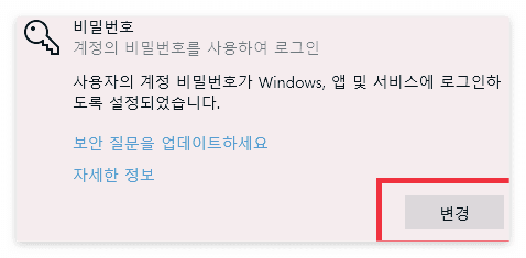 3.비밀번호란의 변경을 마우스 클릭합니다.