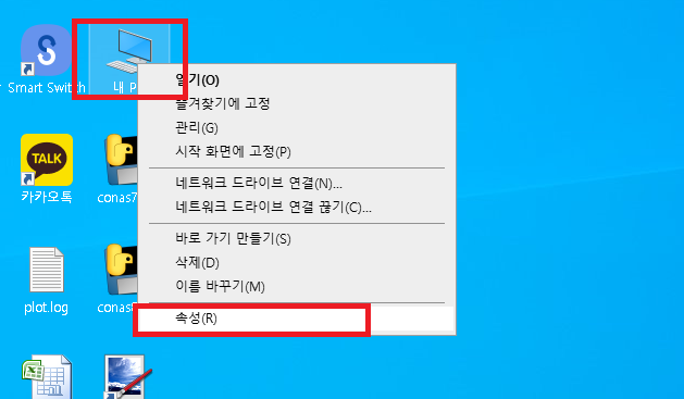 3.세번째 방법: 바탕화면에 있는 내 컴퓨터를 마우스 우클릭하여 속성을 클릭합니다.