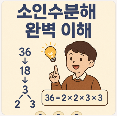 소인수분해는 소수 개념을 잘 이해하고, 작은 수부터 차례대로 나눠보는 습관만 있으면 누구나 쉽게 익힐 수 있습니다.