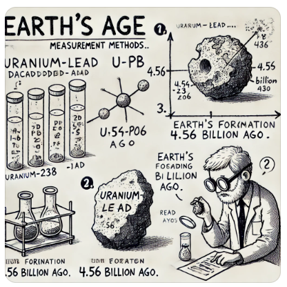 - 따라서 지구도 이 시기에 형성되었을 것으로 보고, 현재 우리가 알고 있는 약 45억 4천만 년이라는 수치를 도출하게 된 것입니다.