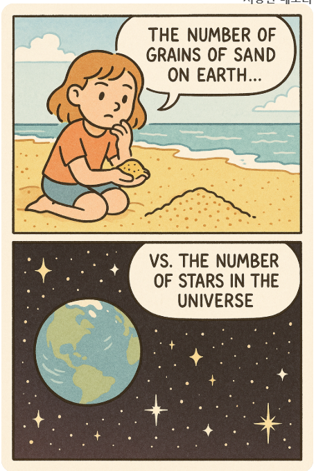 과연 해변의 모래알과 우주의 별중 뭐가 더 많지?