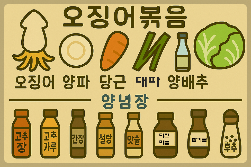 탱글한 오징어와 아삭한 채소가 어우러져 매콤하고 감칠맛 나는 오징어볶음은 언제 먹어도 맛있는 국민 반찬입니다. 특히 이번 레시피는 비린내 없이 깔끔하고 깊은 맛을 내는 황금 양념비율을 그대로 공개하여 누구나 실패 없이 만들 수 있습니다.