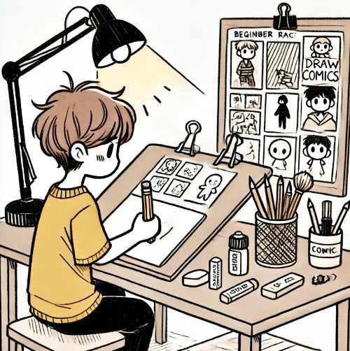 만화를 시작하기 위해 필요한 도구를 준비해야 합니다. HB나 2B와 같은 다양한 경도의 연필과 깨끗하게 지울 수 있는 지우개를 준비하세요. 스케치용으로는 A4 크기의 종이가 적합하며, 만화용 펜이나 마커는 디테일 작업에 유용합니다. 디지털 작업을 선호한다면 태블릿과 디지털 펜도 좋은 선택이 될 수 있습니다. 작업 공간은 밝은 조명이 있는 곳에서 마련하고, 참고할 자료로 사용할 수 있는 책, 그림, 사진 등을 주변에 두면 도움이 됩니다.