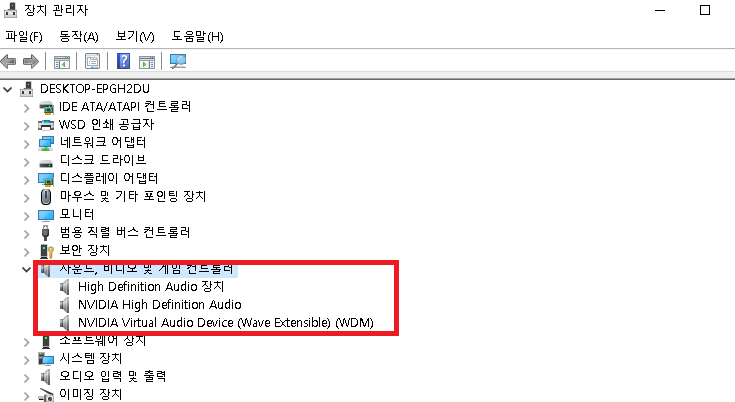 3. 장치 관리자에서 사운드 장치 점검