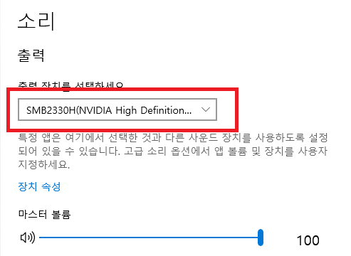 2. 출력 장치 선택 – 기본 오디오 장치가 바뀌었을 수 있습니다