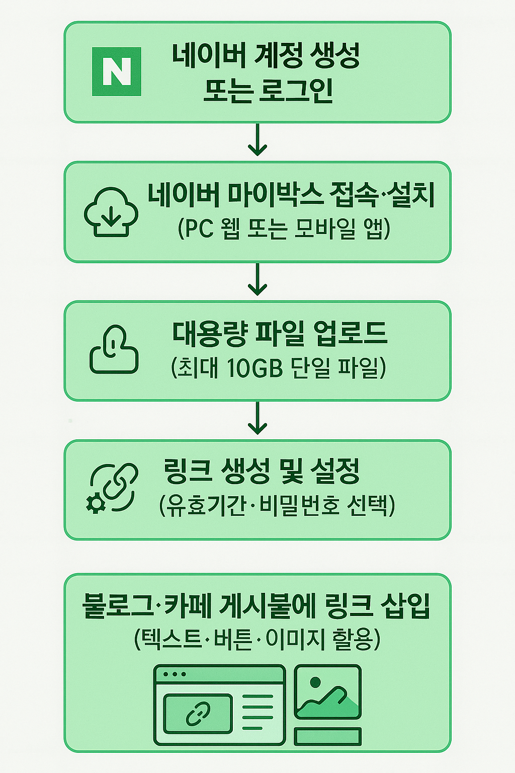 하지만 네이버 MYBOX를 활용하면 대용량 파일을 손쉽게 공유할 수 있습니다. 무료로 30GB까지 사용할 수 있고, 네이버 계정만 있으면 누구나 쉽게 이용할 수 있으습니다. 이번 글에서는 매우 유용하게 사용할 수 있는 네이버 마이박스 설치부터 링크활용 까지