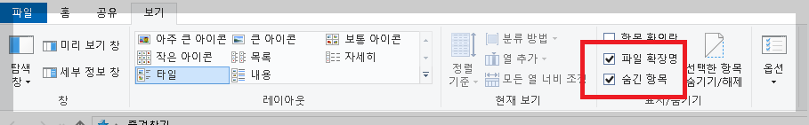 - ‘파일 이름 확장명(File name extensions)’ 체크박스를 활성화해 모든 파일 확장자가 보이도록 설정합니다