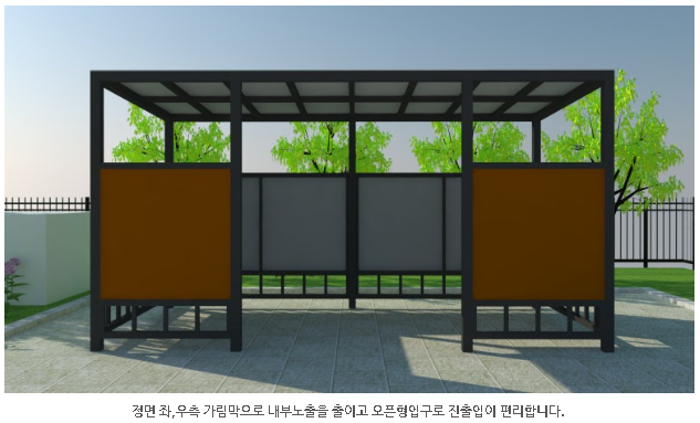 • 내구성 높은 철재프레임 구조: 장기간 실외 설치에도 변형 및 손상 없이 사용 가능하고 화재에도 강함