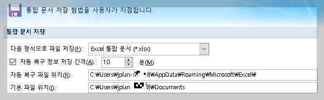 - 또한, 자동 복구 파일 위치를 확인하여, 문제가 생기면 이 위치에서 파일을 찾아 복구할 수 있습니다.