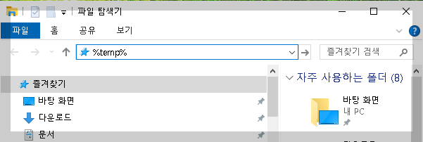 - 파일 탐색기를 열고, 주소 표시줄에 %temp% 를 입력하고 엔터를 칩니다.