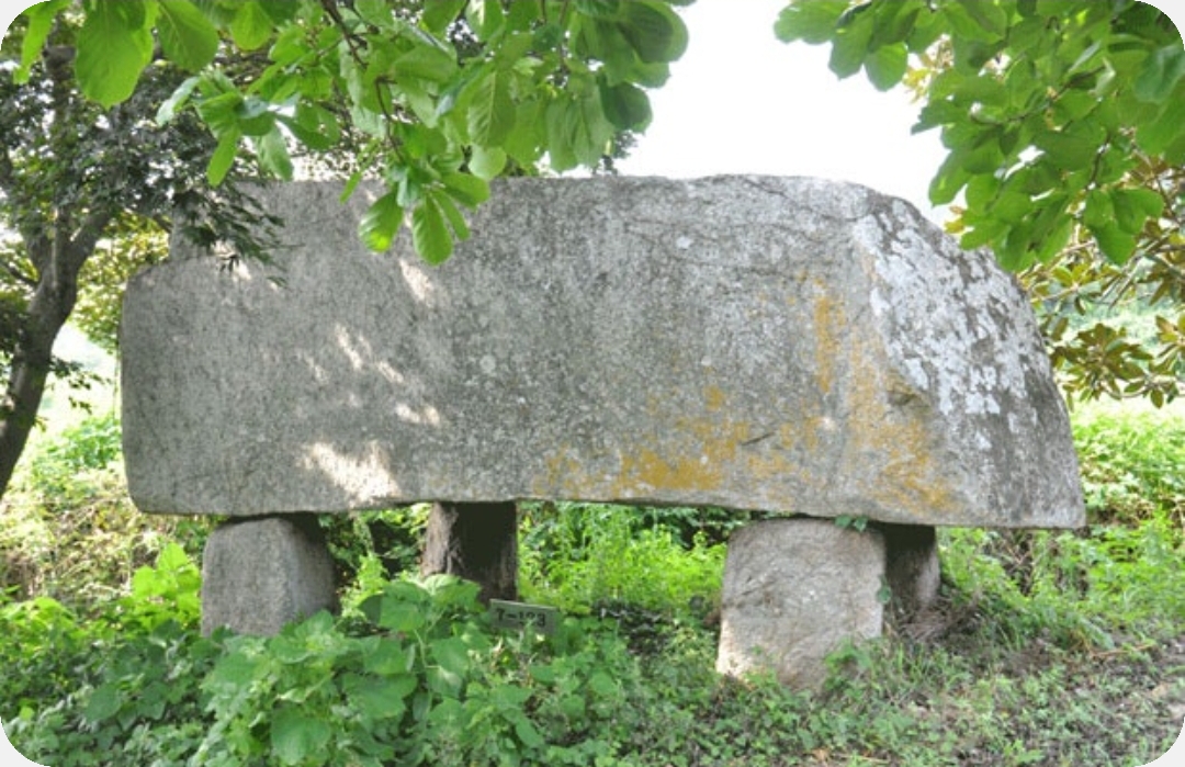 탁자식 고인돌: 크고 평평한 덮개돌이 받침돌 위에 올려진 구조