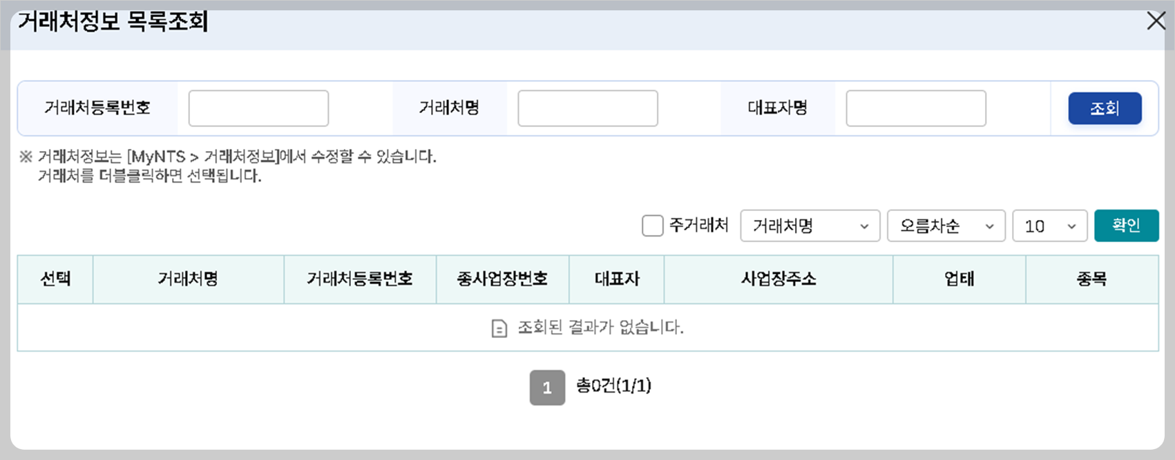 기존거래업체의 경우 거래처목록조회를 하면 좀더 쉽게 활용할 수 있습니다.