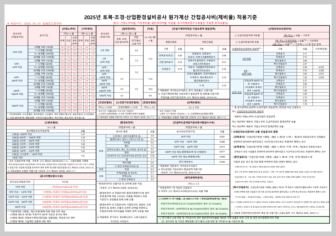 1.2025년 4월 고시 건축,산업환경설비공사 원가계산 간접공사비(제비율)표 <- 클릭 원본다운로드