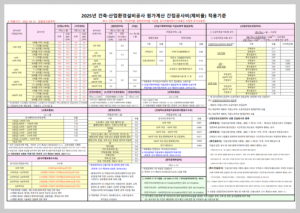 1.2025년 4월 고시 건축,산업환경설비공사 원가계산 간접공사비(제비율)표 <- 클릭 원본다운로드