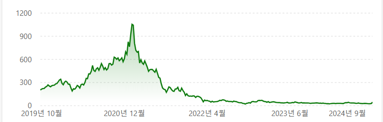 위 그래프를 보면 현재 씨웹의 주가가 긴 시간동안 조정 받고 있음을 알 수 있습니다. 2021년 최고 점을 찍은이후 약 3년8개월 가까이 조정을 받고 있으며 오랜기간동안 의미 있는 반등을 하지 못하고 있습니다. 만약 긴 조정 기간이 에너지 축적의 시간으로 작동 한다면 다시 의미있는 상승이 올 수 도 있을 것 같습니다.
