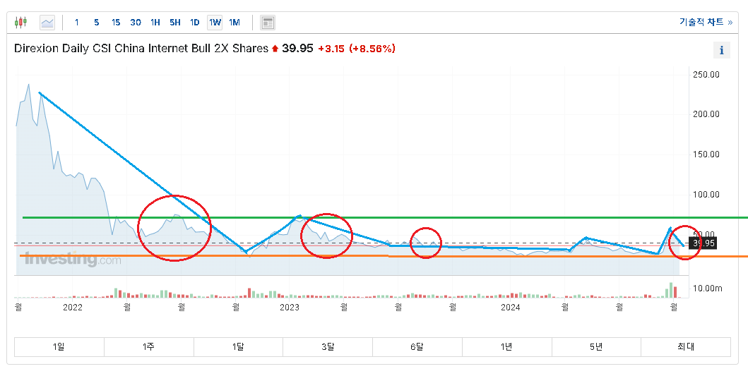 이종목의 1차목표는 중단기 수익을 극대화 하고 2차목표는 국제지형 및 관계 변화를 바탕으로 중국의 비약적 성장이 있을 때 큰 수익을.기대하는 장기투자입니다. 변동성이심한 2배 레버리지 ETF는 강심장을 가진 투자자들의 종목으로 그만큼 큰 위험을 내포하고 있다는 것을 절대 잊지 말고 투자하시기 바랍니다.